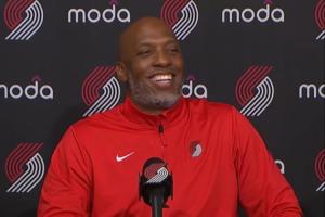比盧普斯賽后接受采訪被問到了楊瀚森,和記者打趣,笑得非常開心。