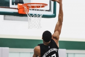 體育資訊10月12日訊 今日雄鹿官方曬出字母哥及字母哥哥訓(xùn)練照。