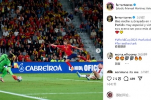 此役是費(fèi)蘭-托雷斯為西班牙隊(duì)出戰(zhàn)的第50場(chǎng)比賽,他在社交媒體上曬出比賽照片,配文:“值得銘記的夜晚,為西班牙出戰(zhàn)50場(chǎng),這是一場(chǎng)非常特別的比賽,勝利讓我們距離世界杯更近一步?!?/p>