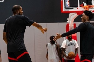 體育資訊10月12日訊 火箭官方更新了球隊(duì)今天的訓(xùn)練照,多位球員都有出鏡,看球衣顏色似乎進(jìn)行了分組對(duì)抗,球員的狀態(tài)看起來都比較積極。