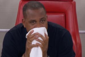 隨后,他就一直坐在教練席上不斷地用毛巾抹臉,眼眶泛紅,場(chǎng)上隊(duì)員和工作人員與馬寧發(fā)生沖突時(shí)他也只是看著。