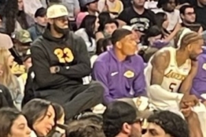 據(jù)洛杉磯記者Mark Medina報道,本場比賽詹姆斯來到了現(xiàn)場觀戰(zhàn),他坐在隊友旁邊的一張高椅子上,大概是為了緩解坐骨神經(jīng)痛。