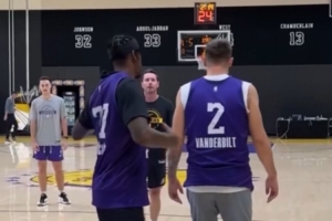 視頻當(dāng)中,東契奇和范德比爾特互換球衣,兩人各自身穿對(duì)方的球衣進(jìn)行訓(xùn)練。