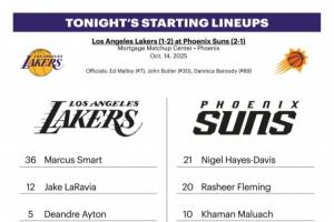 體育資訊10月15日訊 今日10點(diǎn)NBA季前賽,湖人將在客場(chǎng)挑戰(zhàn)太陽(yáng)。