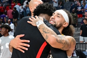 在本場比賽中,阿門-湯普森和阿爾瓦拉多因?yàn)榭ㄎ粏栴}爆發(fā)了沖突,不過,他們兩人在賽后擁抱,握手言和。