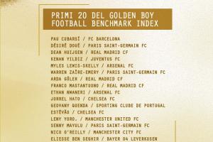 體育資訊10月15日訊 金童獎(jiǎng)公布25人候選,庫(kù)巴西、杜埃、懷森、斯凱利、居萊爾、小貝林厄姆在列。