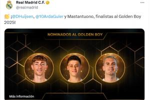 因與《法國足球》關系不佳,皇馬此前并未在社媒或官網(wǎng)祝賀入選金球候選的球員,但這次他們在社媒和官網(wǎng)都祝賀了赫伊森、居萊爾和馬斯坦托諾。