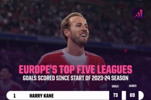 體育資訊10月16日訊 根據(jù)OPTA的統(tǒng)計(jì),自2023-24賽季以來(lái),凱恩是五大聯(lián)賽進(jìn)球最多的球員,他69場(chǎng)聯(lián)賽打進(jìn)73球。