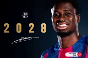 體育資訊10月16日訊 巴薩官方宣布和18歲后衛(wèi)蘭德里-法雷(Landry Farré)續(xù)約兩年至2028年,俱樂部青訓負責人霍安-索勒(Joan Soler)和青訓足球總監(jiān)何塞-拉蒙-阿萊克??疲↗osé Ramón Alexanco)出席了續(xù)約儀式。
