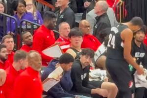 楊瀚森替補(bǔ)席哭了,前CBA名宿杰特上前安慰~楊瀚森眼睛有些紅,也有一些撇嘴