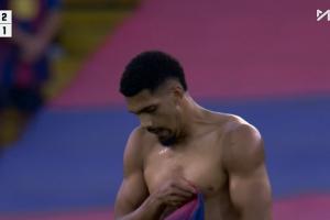 絕殺進(jìn)球瞬間,阿勞霍激情脫衣慶祝,巴薩全隊(duì)也陷入瘋狂慶祝中。