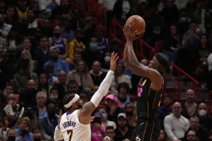 被問到熱火時(shí)期的巴特勒、尼克斯時(shí)期的安東尼、雷霆時(shí)期的喬治,誰首發(fā)、誰替補(bǔ)、裁掉誰時(shí),霍里表示:“我會(huì)裁掉喬治,因?yàn)槟鞘窃诶做膯讨?,我?huì)讓巴特勒首發(fā),因?yàn)槲倚枰愎ナ丶鎮(zhèn)洌@是他而不是甜瓜首發(fā)的原因,季后賽吉米是另一種野獸?!?/p>