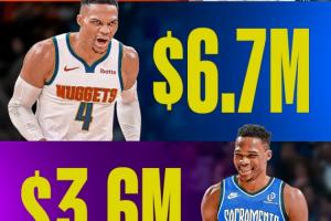 2024年7月26日掘金與拉塞爾-威斯布魯克簽下一份2年677萬(wàn)美元的合同
