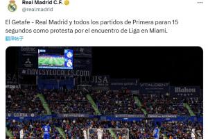 體育資訊10月20日訊 西甲第9輪,皇馬客戰(zhàn)赫塔費,兩隊球員開場暫停15秒以抗議西甲海外賽,皇馬也在社媒和官網(wǎng)發(fā)文。