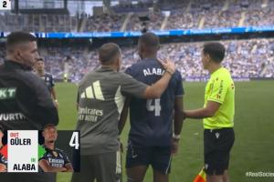 傷停補(bǔ)時(shí)階段,皇馬用阿拉巴換下居勒爾,阿諾德、阿森西奧、加西亞、阿拉巴、米利唐、卡雷拉斯6名后衛(wèi)同時(shí)在場(chǎng)上進(jìn)行防守。