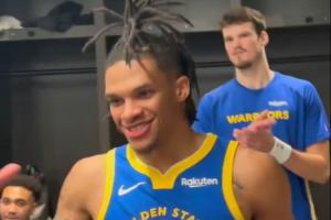 賽后,勇士更衣室內(nèi),理查德被獎(jiǎng)勵(lì)了今天的比賽用球。