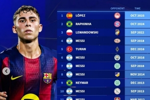 體育資訊10月22日訊 在本輪歐冠巴薩6-1擊敗奧林匹亞科斯的比賽中,費(fèi)爾明上演帽子戲法。