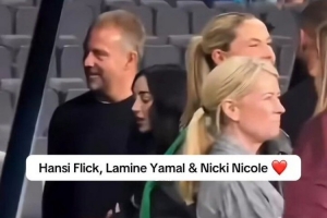 亞馬爾的女友妮基-妮可來到現(xiàn)場,為男友助威,巴薩主帥弗里克賽后與亞馬爾、妮基-妮可交談,三人都面帶笑容。
