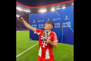 值得一提的是,這是他生涯首次在歐冠首發(fā),打進了歐冠處子球、成為拜仁隊史最年輕歐冠進球者,也在首次在賽后被歐冠官方評為全場最佳球員。