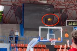 畫面中,當(dāng)時(shí)比賽還剩下0.8秒,余嘉豪所在球隊(duì)落后對手一分,他接應(yīng)隊(duì)友邊線傳球,轉(zhuǎn)身拋射壓哨打進(jìn),卻被裁判吹掉。