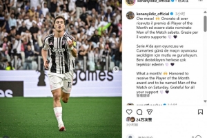 伊爾迪茲在社媒也曬出慶祝進(jìn)球照片,配文寫(xiě)道:“這是多棒的一個(gè)月!很榮幸當(dāng)選意甲8月最佳球員以及國(guó)家德比最佳,很感激大家對(duì)我的支持!”