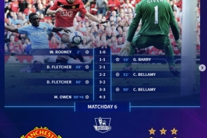 體育資訊9月14日訊 本輪英超將迎來焦點戰(zhàn)曼市德比,德轉也盤點了兩支球隊在近些年的一些經典比賽,具體如下: