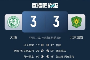 體育資訊10月25日訊 在周中進(jìn)行的亞冠二級(jí)聯(lián)賽小組賽比賽中,北京國安客場3-3與中國香港球隊(duì)大埔戰(zhàn)平,