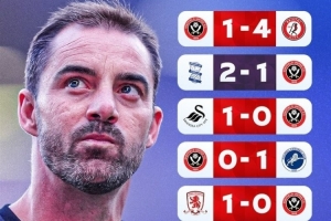 目前,謝菲聯(lián)在英冠聯(lián)賽6戰(zhàn)6負(fù)積0分,進(jìn)1球失12球,位居積分榜倒數(shù)第一。