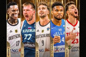 本屆歐錦賽最佳陣容為:施羅德(德國)、小瓦格納(德國)、申京(土耳其)、阿德托昆博(希臘)、東契奇(斯洛文尼亞)