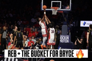 詹姆斯轉發(fā)了亞利桑那大學男籃官方賬號發(fā)布的他的小兒子布萊斯在比賽中完成補籃的照片,并配文道:“耶——6號!”