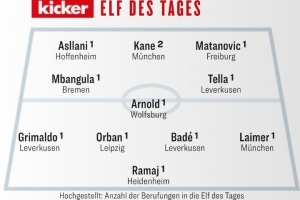 體育資訊9月15日訊 德甲第3輪比賽結(jié)束,《踢球者》公布了本輪評(píng)選的德甲最佳陣。