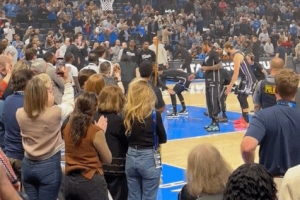 賽前球員入場環(huán)節(jié),當(dāng)威少被介紹時(shí),全場爆發(fā)了歡呼聲和掌聲,許多球迷為曾經(jīng)的俄城之子起立叫好。