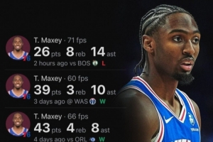 在賽季的前五場比賽中,馬克西場均能得到35.2分,上一個賽季前五戰(zhàn)場均得分高于他的還是2019年的哈登(場均36.6分)。