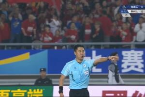 第24分鐘,南通隊球員程鑫拼搶時踩到巴特腳面,馬寧向其出示黃牌警告。↓