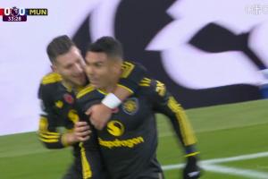 體育資訊11月1日訊 英超曼聯(lián)vs森林,第33分鐘,卡塞米羅破門(mén),曼聯(lián)先入一球,此時(shí)比分變?yōu)槁?lián)1-0森林。