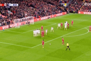 體育資訊11月02日訊 英超第10輪利物浦vs維拉第32分鐘,加克波內(nèi)切造禁區(qū)線前任意球,索博斯洛伊主罰任意球打后點,被大馬丁撲出!