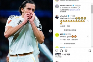 卡雷拉斯社媒曬出親吻皇馬隊(duì)徽的照片,配文:“很多進(jìn)球中的第一個(gè)。我愛(ài)你,皇馬。”