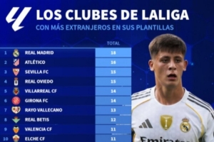 體育資訊9月16日訊 近年來,皇馬引進(jìn)了多名外籍球員,這讓球隊(duì)中外籍球員比例不斷上升。根據(jù)德國轉(zhuǎn)會(huì)市場(chǎng)的統(tǒng)計(jì),皇馬陣中目前有18名外籍球員,占比高達(dá)72%(18/25),是西甲中外籍球員最多的俱樂部。