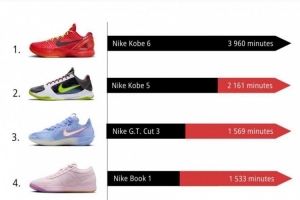 10月份NBA球鞋上腳時間排行!前二均為科比球鞋 布克第四!