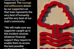 俱樂部老板馬里納基斯表示:“諾丁漢森林全體成員對發(fā)生的悲劇感到震驚和深切悲痛。我們的支持者在列車上展現(xiàn)的勇氣和無私,體現(xiàn)了最崇高的人性光輝和最寶貴的俱樂部社區(qū)精神。”