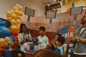 從網(wǎng)上流傳的照片來(lái)看,梅西一家舉辦了巴薩主題派對(duì),為蒂亞戈慶祝13歲生日。
