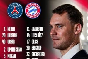 體育資訊11月3日訊 拜仁將在本輪歐冠迎戰(zhàn)巴黎,球隊也公布了本場大名單,具體如下: