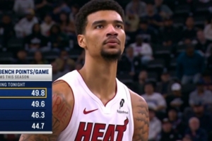 轉(zhuǎn)播方給出數(shù)據(jù):今日比賽之前,熱火本賽季替補(bǔ)場均共得49.8分,聯(lián)盟第一。