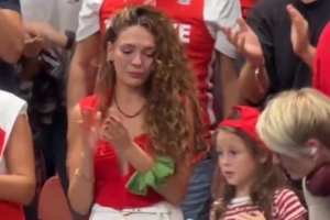 體育資訊9月16日訊 男籃歐錦賽決賽土耳其83-88不敵德國(guó),賽后奧斯曼妻嬌妻場(chǎng)邊灑淚,女兒也情緒低落,奧斯曼趕緊上前安慰。