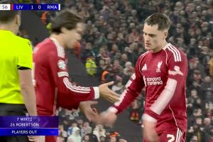 體育資訊11月05日訊 歐冠第4輪利物浦vs皇馬第89分鐘,利物浦再次做出2個換人調(diào)整,維爾茨、羅伯遜被換下,凱爾凱茲、基耶薩替補(bǔ)登場。