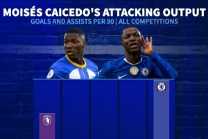 體育資訊11月5日訊 本賽季凱塞多在進攻端發(fā)揮越來越好,德轉(zhuǎn)也盤點了球員生涯每90分鐘參與進球數(shù)據(jù)(各項賽事進球+助攻),其中來到英超后逐年遞增,具體如下: