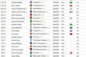 以下為CIES未滿20歲預(yù)估轉(zhuǎn)會費(fèi)top10