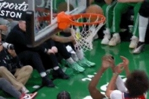 GIF-雙方爭搶籃板 球直接進筐
