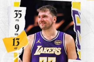賽后湖人官方發(fā)布東契奇數(shù)據(jù)海報:“對于盧卡來說又一個表現(xiàn)出色的夜晚。”