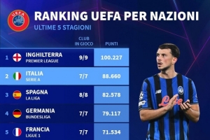 各國(guó)聯(lián)賽歐戰(zhàn)總積分排名(近5個(gè)賽季):